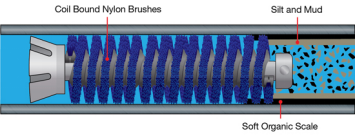 康科XL型管刷清洁器使用康科ProSeries管路清洗系统驱动射出,穿过冷凝器和热交换器管路以达到清洗目的,具有缠绕式尼龙刷毛,以每秒10到20英尺(200-300PSI)的速度穿过管路,清除沉积物、腐蚀物及部分障碍物。