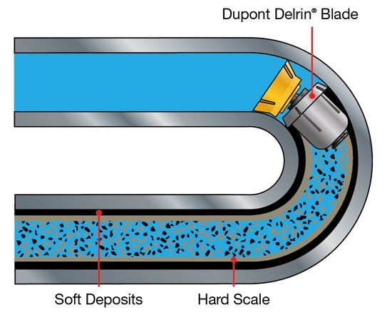 康科塑料U型管路清洁器使用康科ProSeries管路清洗系统驱动,采用单级设计,带有杜邦Delrin®清洁表面,以每秒10到20英尺(200-300PSI)的速度穿过管路,清除沉积物,包括微生物污垢、有机垢、障碍物和腐蚀产物。