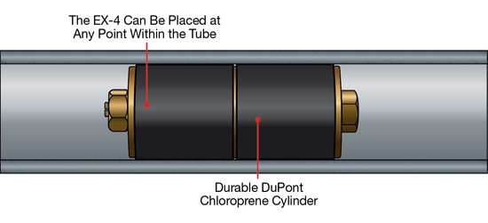 EX-4采用氯丁橡胶密封的两段式设计,采用小型垫圈设计,使管塞可以被安放在管路内的任何位置。